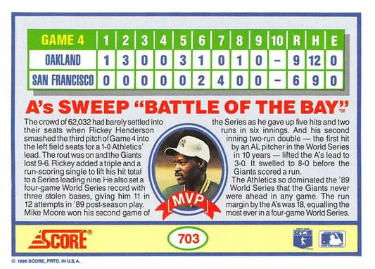 1990 Score #703 WS Game 4/Wrap-up NM-MT Oakland Athletics/San Francisco Giants Baseball Card