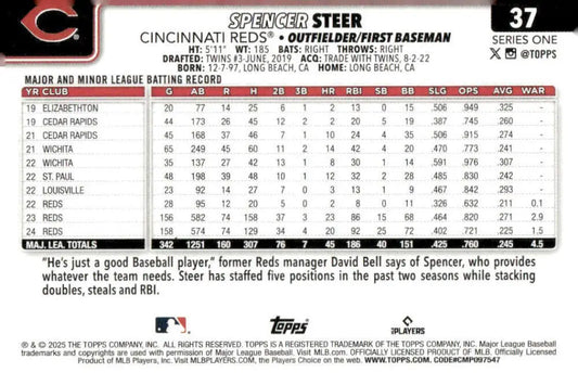 2025 Topps #37 Spencer Steer NM-MT Cincinnati Reds Baseball Card