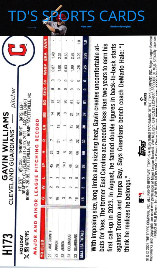 2024 Topps Holiday #H173 Gavin Williams Silver Glitter