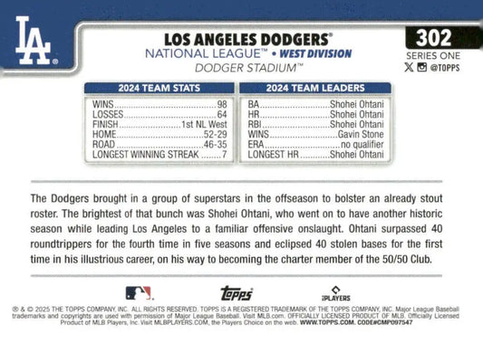 2025 Topps #302 Los Angeles Dodgers NM-MT Los Angeles Dodgers Baseball Card