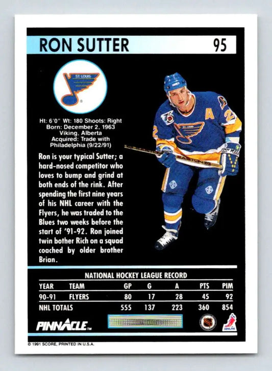 1991-92 Pinnacle #95 Ron Sutter NM-MT St. Louis Blues Hockey Card