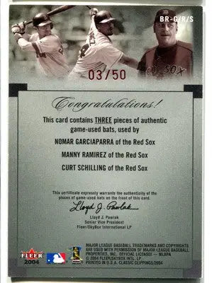 Garciaparra Manny Ramirez Curt Schilling Boston Red Sox Fleer GU Bat Rack #/50