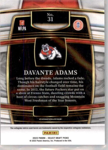 2022 Panini Select Draft Picks Blue #31 Davante Adams NM Near Mint Conc ID:66455