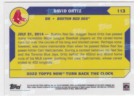 2022 TURN BACK THE CLOCK #113 DAVID ORTIZ- BOSTON RED SOX