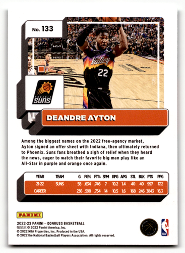 2022-23 Panini Donruss Optic DeAndre Ayton #126 Phoenix Suns Basketball Card NBA