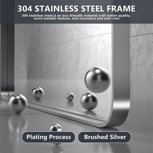 Brushed Silver Bathroom Mirrors for Wall, 30X40 Inch