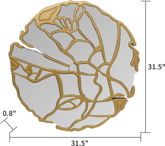 Large Irregular Frame Gold Wall Mirror - Decorative Round Mirror for Living Room, Entryway, and Bedroom Wall Decor - 31.5'' Diameter