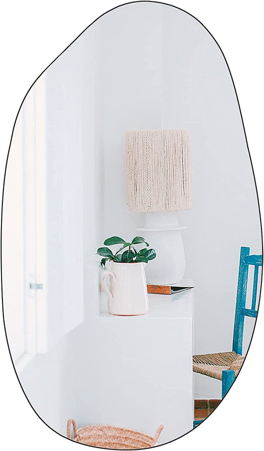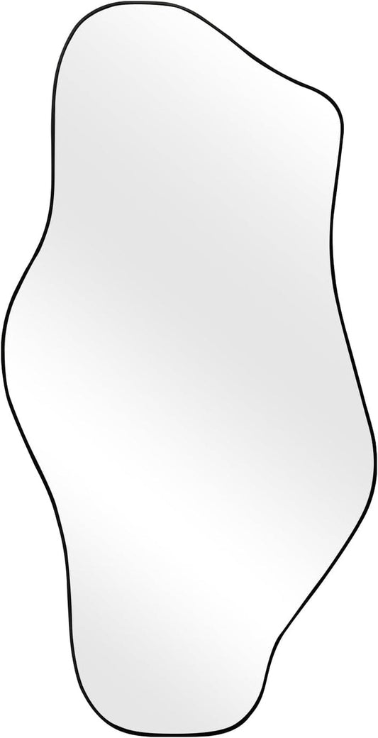 Modern Decorative Irregular Mirror with Asymmetrical Body Shape and Black Frame - Ideal for Living Room, Bathroom, Bedroom, Entryway, or Fireplace - Large Size 47.2X21