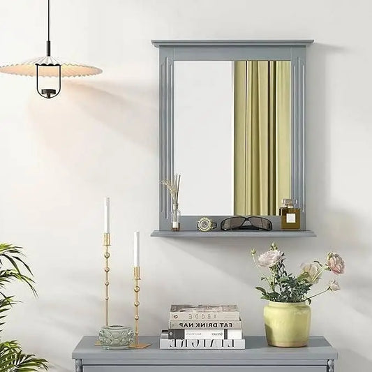 27-in x 22.5-in Bathroom Wall Mirror with Shelf in Gray Wood Finish