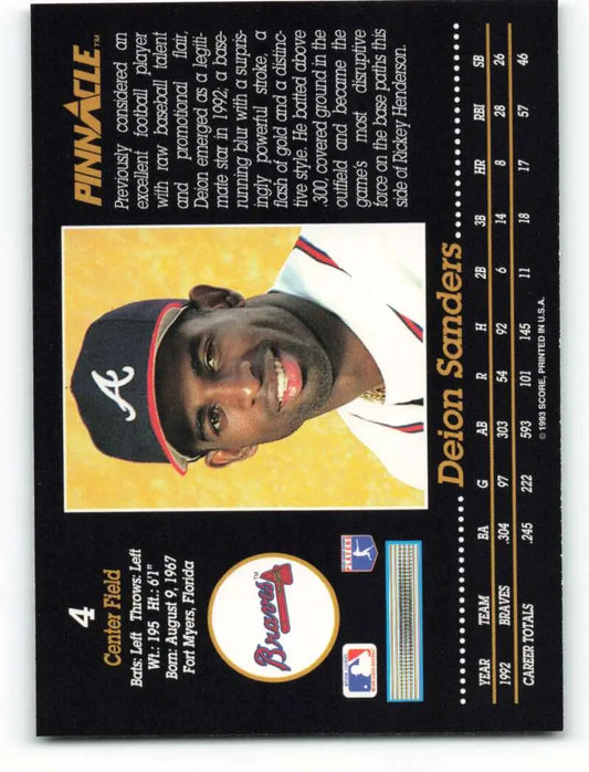 1993 Pinnacle #4 Deion Sanders NM-MT Atlanta Braves Baseball Card