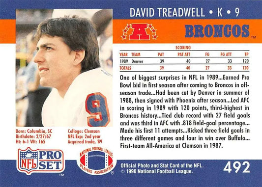 1990 Pro Set #492 David Treadwell NM-MT Denver Broncos Football Card