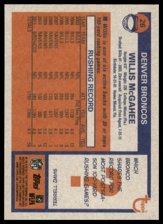 2013 Topps Archives Willis McGahee #26 Denver Broncos Football Card NFL Sports
