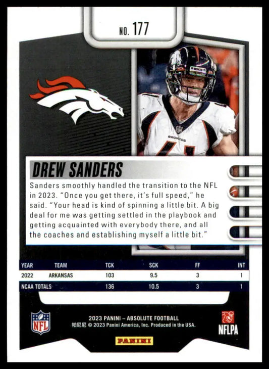 Drew Sanders Rookie 2023 Panini Absolute Retail #177 Denver Broncos