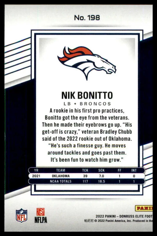 Nik Bonitto Rookie 2022 Donruss Elite Green #198 Denver Broncos