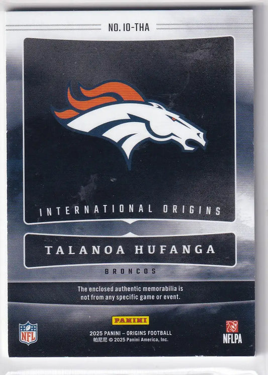 2025 Panini Origins Relic 7/199 #IO-THA Talanoa Hufango - Denver Broncos