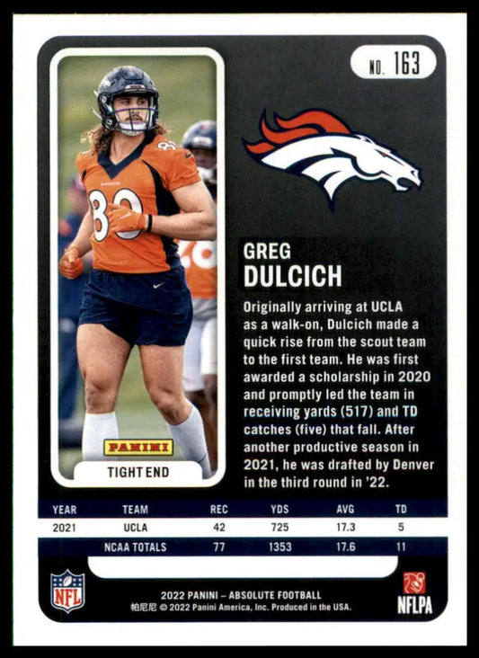 Greg Dulcich Rookie 2022 Panini Absolute Retail #163 Denver Broncos