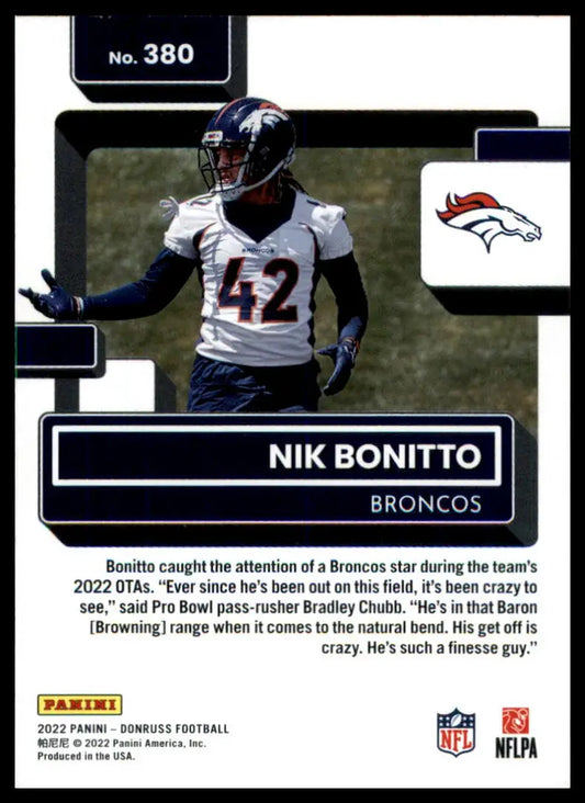 Nik Bonitto Rookie 2022 Donruss #380 Denver Broncos