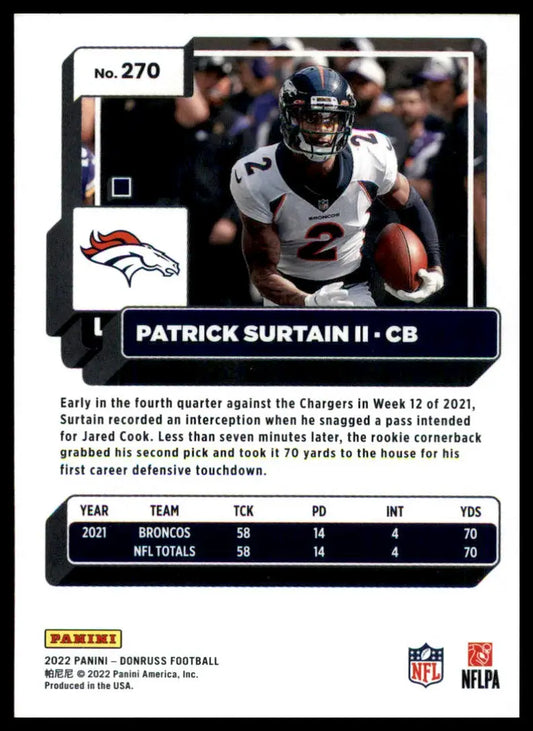 Patrick Surtain II 2022 Donruss #270 Denver Broncos
