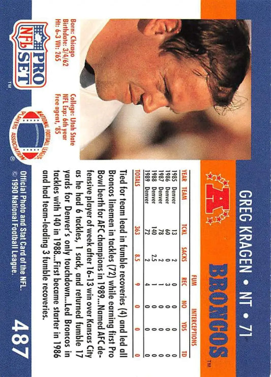 1990 Pro Set #487 Greg Kragen NM-MT Denver Broncos Football Card