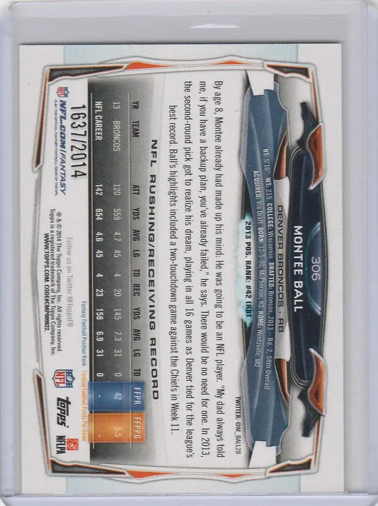 2014 Topps Gold #306 Montee Ball Denver Broncos 1637/2014