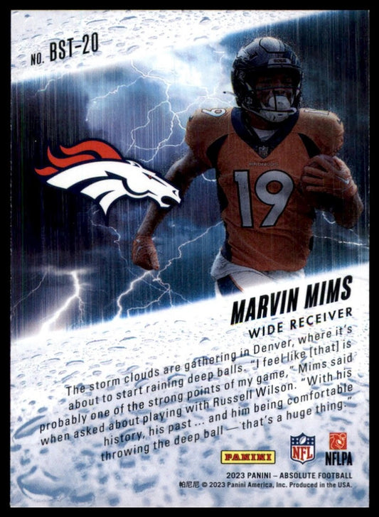 2023 Panini Absolute By Storm Marvin Mims #BST-20 Rookie Denver Broncos Football