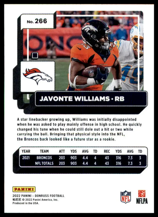Javonte Williams 2022 Donruss #266 Denver Broncos