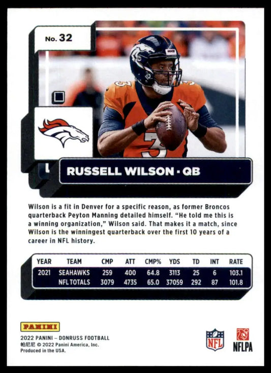 Russell Wilson 2022 Donruss #32 Denver Broncos