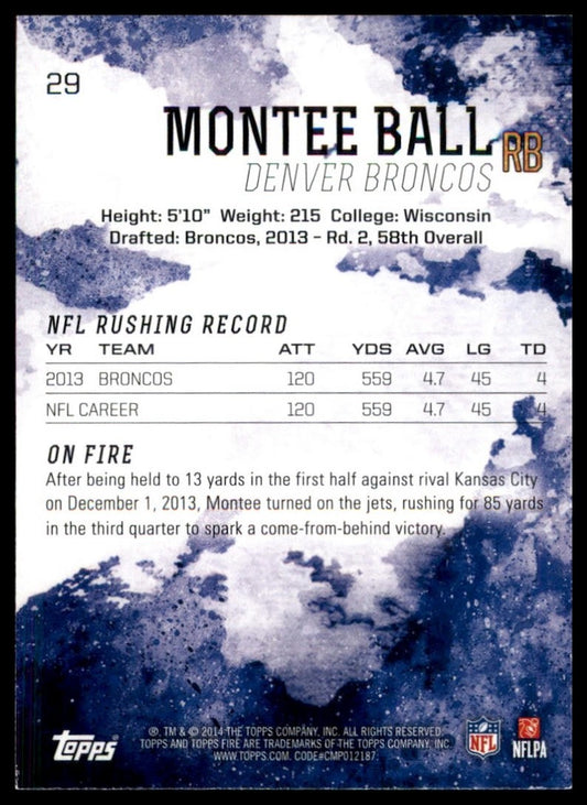 2014 Topps Fire Montee Ball #29 Denver Broncos Football Card NFL Sports