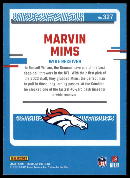 2023 Panini Donruss Blue Rookie Marvin Mims #327 Denver Broncos Football Card
