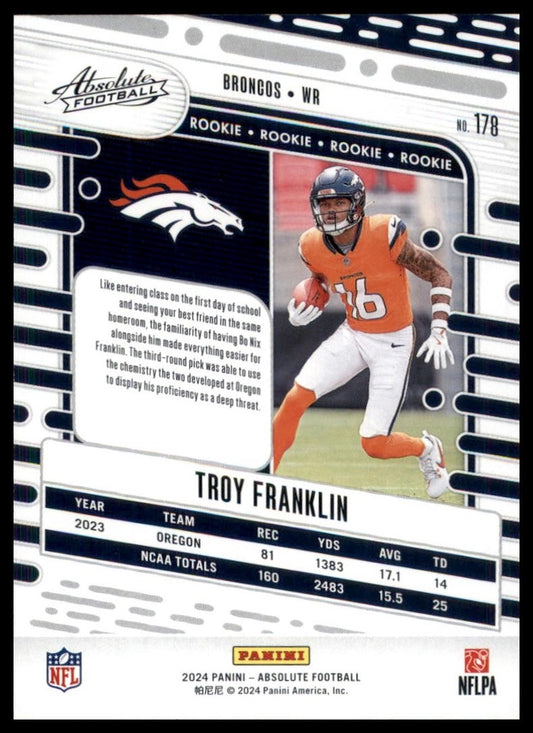 2024 Panini Absolute Rookie Troy Franklin #178 Denver Broncos Football Card NFL