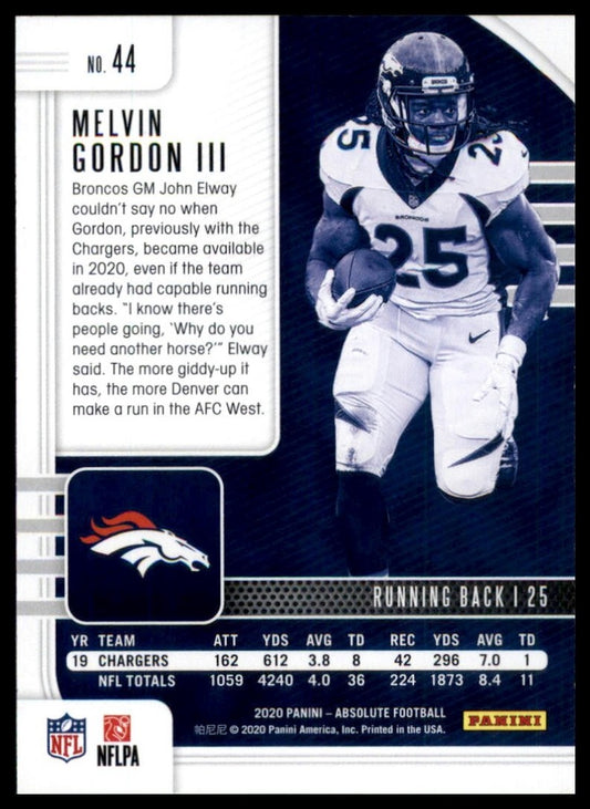 2020 Panini Absolute Melvin Gordon #44 Denver Broncos Football Card NFL Sports
