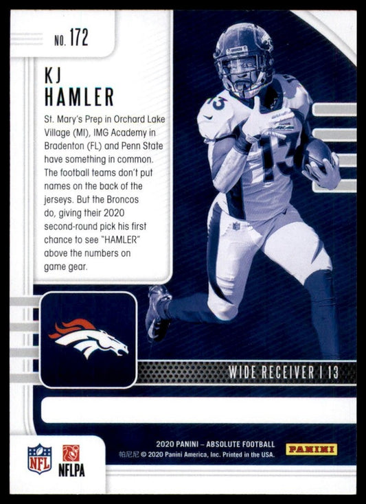 2020 Panini Absolute Rookie KJ Hamler #172 Denver Broncos Football Card NFL