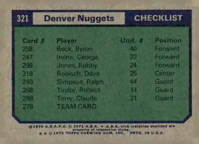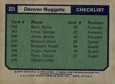 1975-76 Topps #321 Denver Nuggets EX-MT