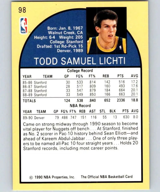 1990-91 Hoops #98 Todd Lichti NM-MT RC Rookie Denver Nuggets Basketball Card