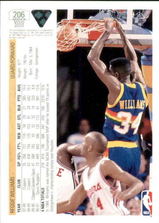 1991-92 Upper Deck #206 Reggie Williams NM-MT Denver Nuggets Basketball Card