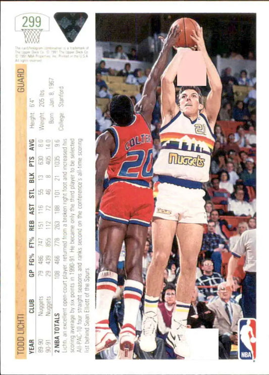1991-92 Upper Deck #299 Todd Lichti NM-MT Denver Nuggets Basketball Card