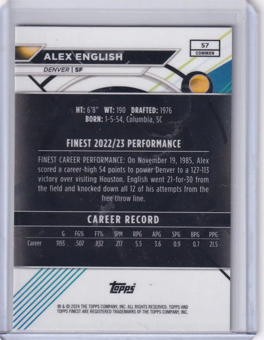 2024-25 Topps Finest Purple 15/125 #57 Alex English - Denver Nuggets