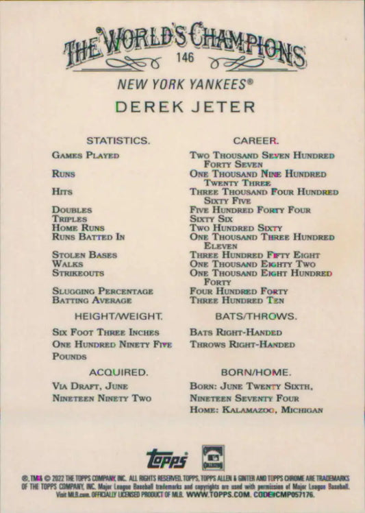 2022 Topps Allen and Ginter Chrome #146 Derek Jeter NM-MT New York Yankees Baseball Card