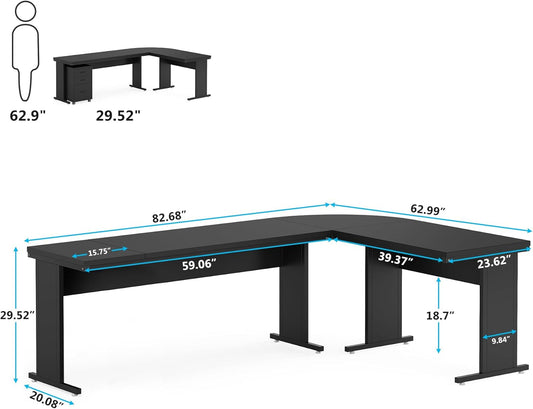 83" L-Shaped Executive Desk, Large Office Desk with 3-Drawer Mobile File Cabinet, Industrial Computer Desk with Storage Drawers, Business Furniture Table Workstation for Home Office (Black)