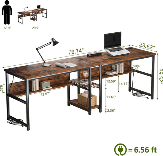 Extra Long Solid Wood Desk with Bookshelf Storage