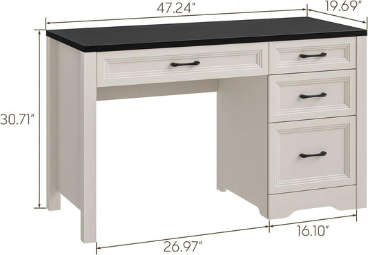 55'' Farmhouse Executive Desk with File Cabinet, Home Office Wood Computer Desk with Drawers and Power Outlets, White