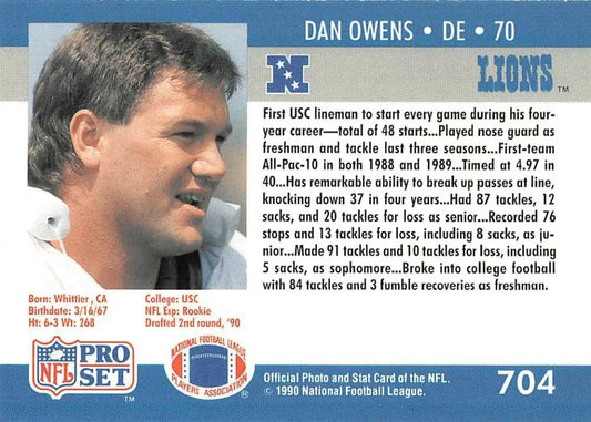 1990 Pro Set #704 Dan Owens NM-MT RC Rookie Detroit Lions Football Card