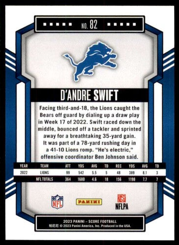 2023 Score #82 D'Andre Swift NM Near Mint Lions ID:64965
