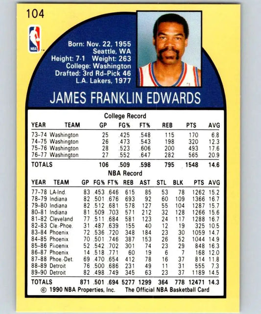 1990-91 Hoops #104 James Edwards NM-MT Detroit Pistons Basketball Card