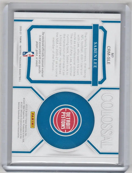 2020-21 Panini National Treasures Colossal Relic Saben Lee Detroit Pistons 6/25