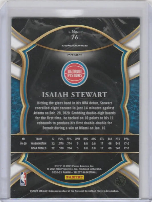2020-21 Panini Select Prizms Green White Purple #76 Isaiah Stewart Pistons