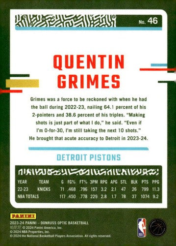 2023-24 Donruss Optic #46 Quentin Grimes NM-MT Pistons ID:78596