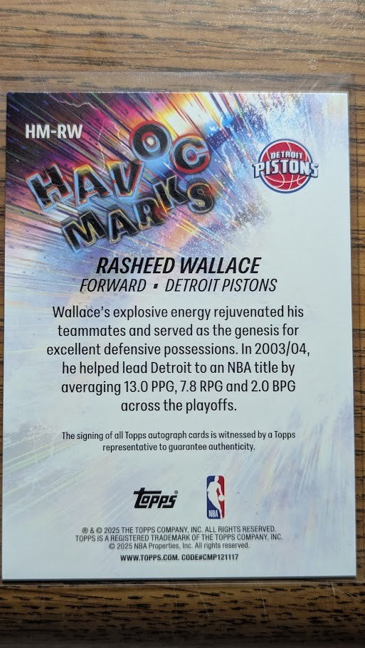 2025 Topps Havoc Marks Rasheed Wallace Autograph HM-RW Pistons NBA