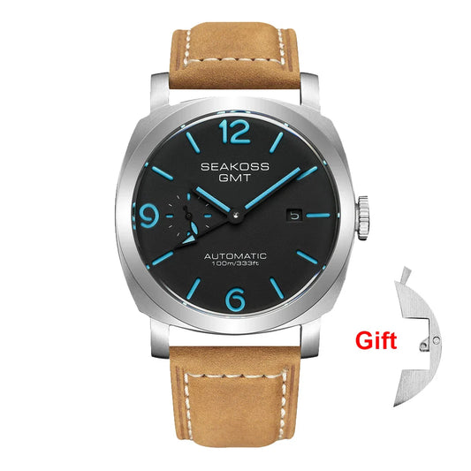 SEAKOSS GMT Diving Automatic Mechanical Watch 10Bar Men 1963 Seagull 2557 Movement Super Luminous Calendar Sapphire Wristwatches