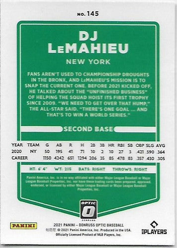 2021 Donruss Optic #145 DJ LeMahieu NM-MT Yankees